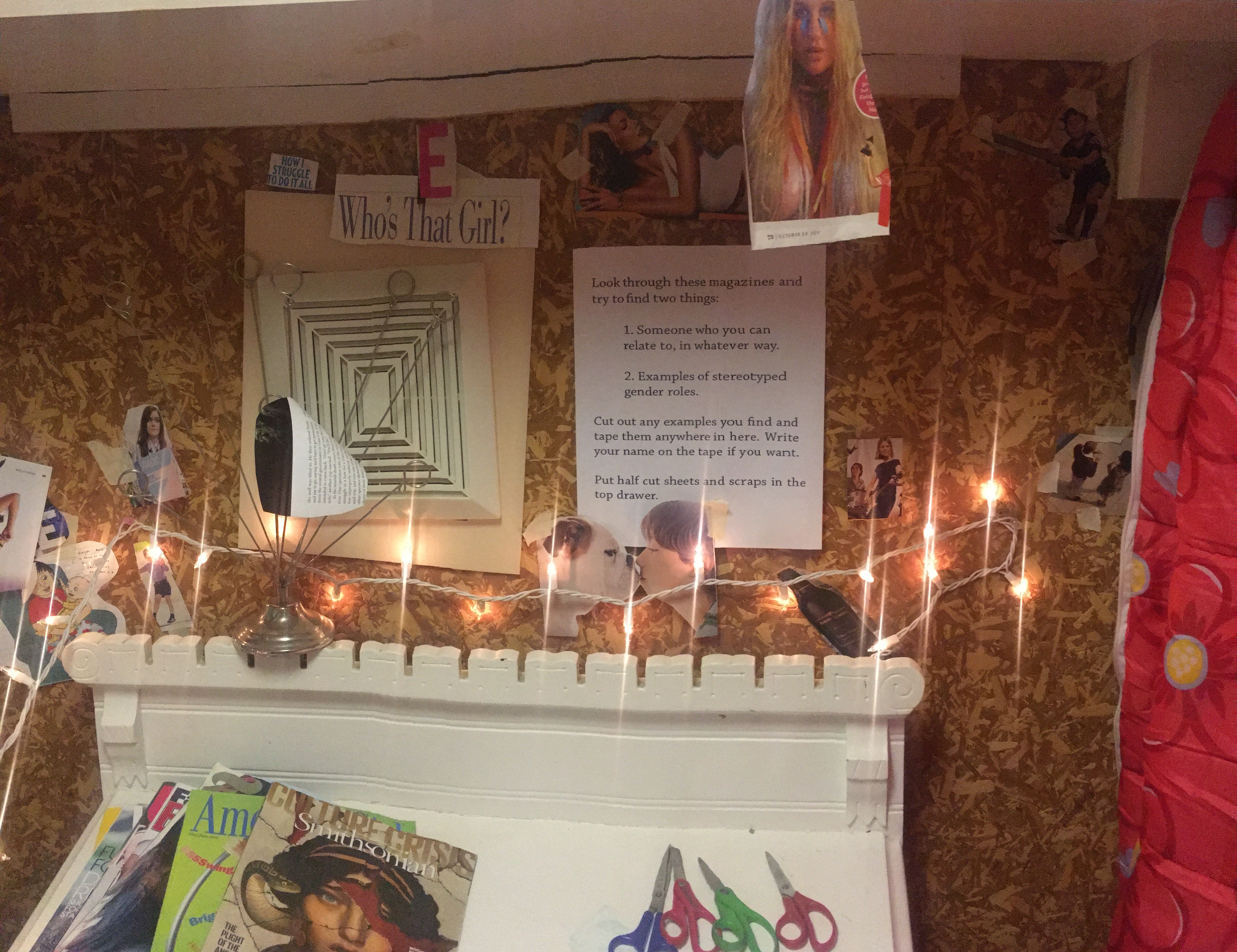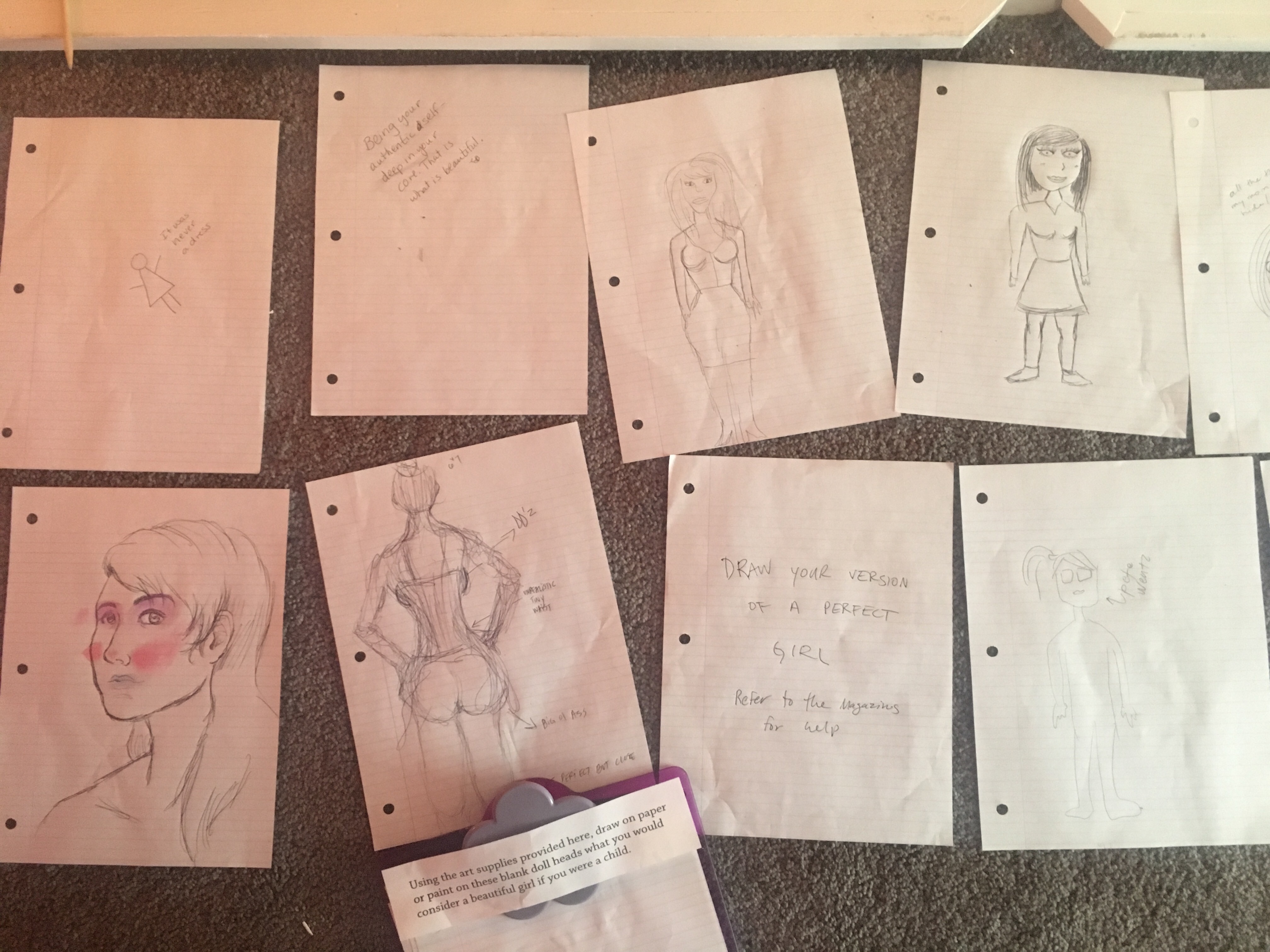 This prompt started with a stack of looseleaf paper, pens, markers, water colors, and make-up. The prompt read: